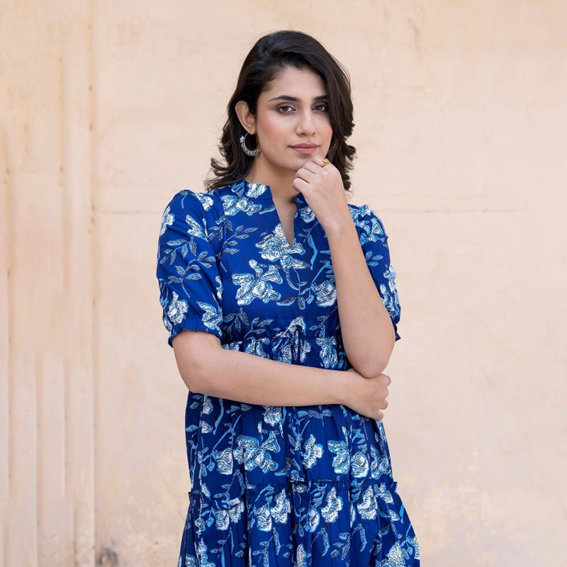 Printed Ready to Wear Halter Neck Smocked Lehenga & Blouse With Dupatta