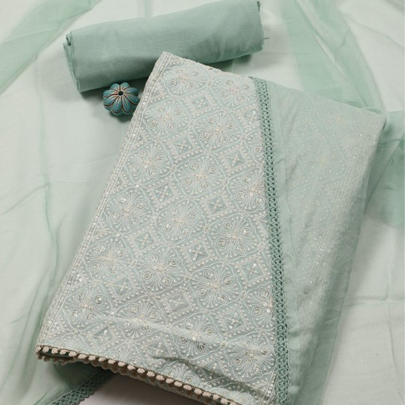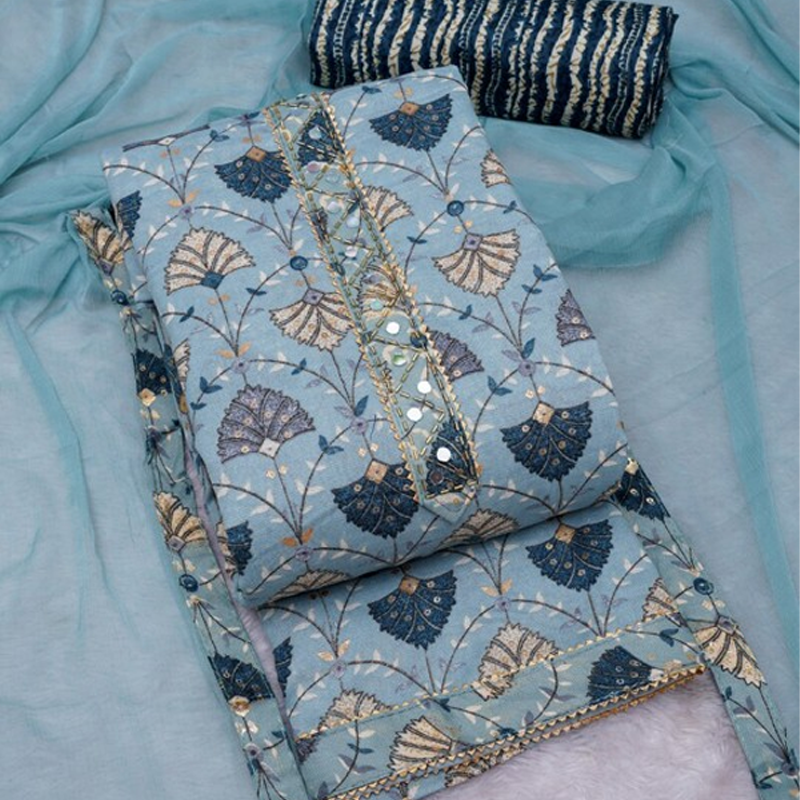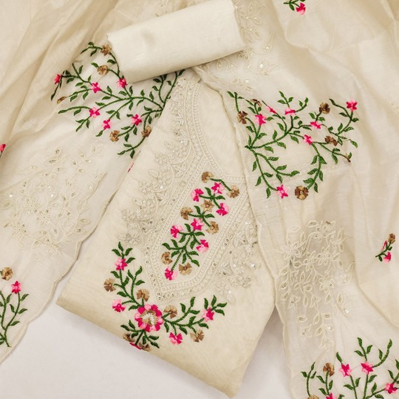 Floral Embroidered Sequinned Chanderi Unstitched Dress Material