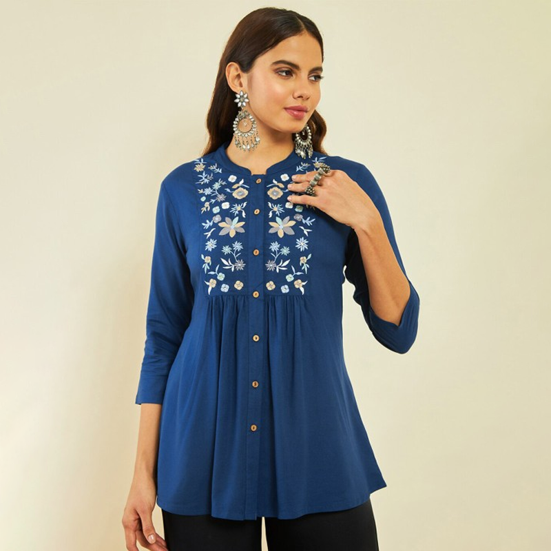 Schiffli Shirt Collar Schiffli Pure Cotton Tunics